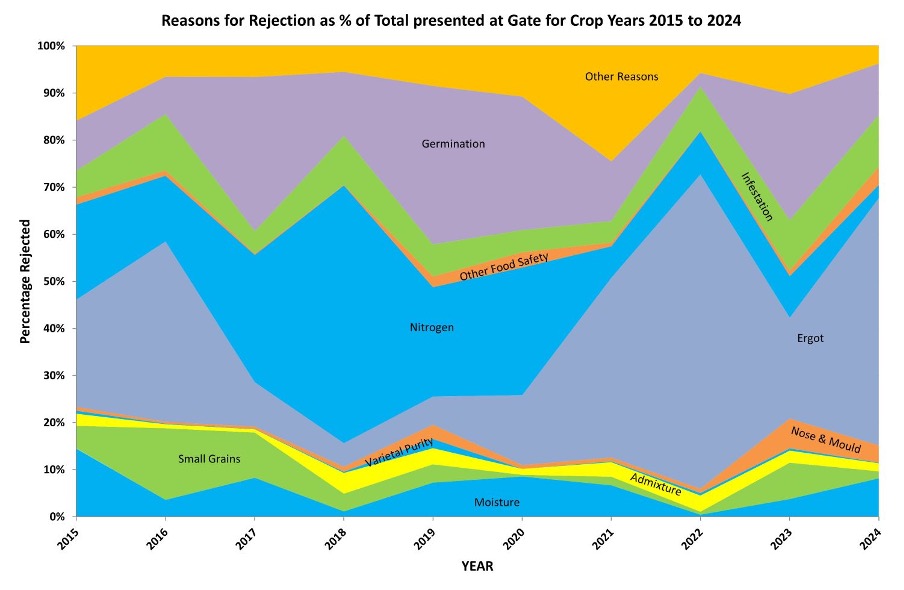 Legal limits for ergot in grain are extremely low – just 0.5 g per kilogram is permitted – and this strict threshold meant ergot was the leading cause of malting barley rejections in three out of the last five years, according to MAGB. When grain is rejected, farmers lose access to premium markets and may also face additional costs for testing, sorting and cleaning grain. While weather is a key driver, attention is now turning to whether some farming practices might be affecting the risk of ergot and other fungal diseases.